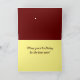 This card is great fun and good quality. I loved the humour inside and on the back. There is the opportunity to change the orientation of this card from landscape to portrait, which I did. It is relatively straightforward to amend the typeface to fit the new orientation. It was well packaged with no plastic. The printing on this card is excellent.