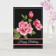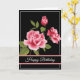 Birthday card shown with a black background and pretty pink roses.