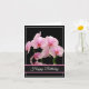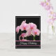 Birthday card is shown with a black background and pretty pink orchids.