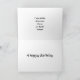 This card is great fun and good quality. I loved the humour inside and on the back. There is the opportunity to change the orientation of this card from landscape to portrait, which I did. It is relatively straightforward to amend the typeface to fit the new orientation. It was well packaged with no plastic. The printing on this card is excellent.
