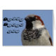 Birthday greeting card cute grey and brown bird and blue sky, black candy text "Happy Birthday"