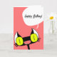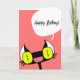 A cheerful and fun birthday card featuring a black cartoon kitten with big yellow eyes and a playful, expressive smile. Perfect for wishing a special girl a joyful and memorable birthday filled with laughter and love.