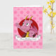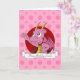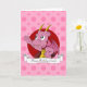 Personalised Greeting Card with illustration of head of a cute little pink flying superhero dragon wearing a red cape, in red circle on seamless pink polka dot pattern, cute fantasy / fairy-tale design for kids by Maxi Harmony, with customisable text templates for girl's name, your message to her and your signature