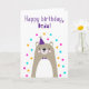 This card is great fun and good quality. I loved the humour inside and on the back. There is the opportunity to change the orientation of this card from landscape to portrait, which I did. It is relatively straightforward to amend the typeface to fit the new orientation. It was well packaged with no plastic. The printing on this card is excellent.