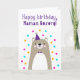 This card is great fun and good quality. I loved the humour inside and on the back. There is the opportunity to change the orientation of this card from landscape to portrait, which I did. It is relatively straightforward to amend the typeface to fit the new orientation. It was well packaged with no plastic. The printing on this card is excellent.