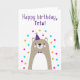 Birthday Card for Teta. If you call your grandmother Teta instead of Grandma, this birthday card is perfect for her. (Teta means grandmother in Arabic.) Your teta will love this birthday card's cute, modern, colourful, Scandinavian-style design that features a brown and grey teddy bear cub with a purple party hat and bowtie and pink, yellow, and blue confetti with the text "Happy birthday, Teta!"