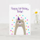 Make this card customisable! Click "Edit Design", "Inside Bottom/Right: Text & Images", "Text", and "Add text" to write your own custom, personalised message to Teta inside!