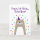 This card is great fun and good quality. I loved the humour inside and on the back. There is the opportunity to change the orientation of this card from landscape to portrait, which I did. It is relatively straightforward to amend the typeface to fit the new orientation. It was well packaged with no plastic. The printing on this card is excellent.