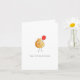card features and characterised chickpea holding a red balloon.