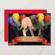 The Mastiff wishes a happy birthday with many colorful balloons. The dog is a Molossus and a gentle giant among dog breeds. He is very loyal, affectionate, but also very vigilant. He used to guard large estates and thanks to his enormous size and strength, he would scare away highwaymen just by his appearance. He is very fond of children and in some countries, he is used as a therapy dog due to his gentleness.