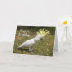 Greeting card saying Happy Birthday featuring a Lesser Sulphue Crested Cockatoo parrot. The inside is blank for your own message.