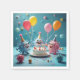 Vibrant and playful germ characters come together for a delightful birthday celebration, complete with balloons, festive party hats, and a cake, all set against a backdrop of swirling confetti