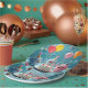 Vibrant and playful germ characters come together for a delightful birthday celebration, complete with balloons, festive party hats, and a cake, all set against a backdrop of swirling confetti