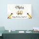 Celebrate any age birthday with this editable CHEERS TO # YEARS birthday party banner sign in black and gold with a celebratory drink from a wine, beer or champagne bottle, modern handwritten script typography and your custom text. The sample shows 40 but can easily be changed to to another age. Contact the designer via Zazzle Chat or makeitaboutyoustore@gmail.com if you'd like this design modified, on another product or would like coordinating items.
