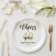 Birthday CHEERS TO # YEARS Black Gold Stars Script Paper Plate