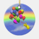 A cute little chicken is being carried away by colourful birthday balloons! Customisable text says "Happy Birthday!".