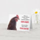 Here's a cute way to wish your chicken loving farmer friends a happy birthday! A close up colour photograph showing the profile view of a common red hen usually raised for eggs (RIR - Rhode Island Red) with a couple cheesy, corny chicken jokes on the front and another inside. The text fields are editable so you can change the occasion if needed.
