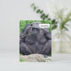 Chimpanzee sitting on large rock chewing a weed for birthday party invite.