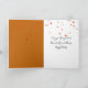 This card is great fun and good quality. I loved the humour inside and on the back. There is the opportunity to change the orientation of this card from landscape to portrait, which I did. It is relatively straightforward to amend the typeface to fit the new orientation. It was well packaged with no plastic. The printing on this card is excellent.