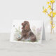 Watercolor design of a cute chocolate cocker spaniel dog in a flower garden for anyone's birthday.