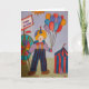 Nothing can be more fun than a day out at the fairground. Especially when you are greeted by a cute clown clutching a colorful bunch of balloons and a sign saying 'Happy Birthday'. In vibrant pastel colors of blue, red, yellow and lilac, this is the perfect birthday greeting for young and old.