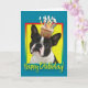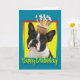 Celebrate a birthday with this whimsical Boston Terrier Dog Greeting Card. With a cupcake balanced on it's head, this design is sure to bring a smile and giggles! BTW, This design has several versions, with different background colours. There is also an invitation to a Party version.