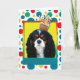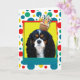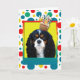 Celebrate a birthday with this whimsical Cavalier King Charles Spaniel Dog Greeting Card. With a cupcake balanced on it's head, this design is sure to bring a smile and giggles! BTW, This design has several versions, with different background colors. There is also an invitation to a Party version.