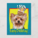 Celebrate a birthday with this whimsical Yorkshire Terrier Dog Greeting Card. With a cupcake balanced on it's head, this design is sure to bring a smile and giggles! BTW, This design has several versions, with different background colours. There is also an invitation to a Party version.