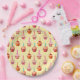 Sweet party plates with colorful cupcake pattern on light yellow polka dot background.