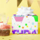 Cute, colourful, and fun birthday wrapping paper featuring a pattern of cupcakes, polka dots, and the word birthday written in a polka dot font. This fun birthday wrapping paper if perfect for anyone's special day.