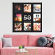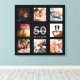 A unique 50th (or any age) birthday gift or keepsake, celebrating her life with a collage of 8 of your photos. Add images of her family, friends, pets, hobbies or dream travel destination. Personalise and add a name, age 50 and a date. Grey and white coloured letters. A chic black background. This canvas is also available in our store with white or rose gold coloured background.