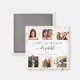 For a woman's 21st (or any age) birthday, celebrating her life with a collage of 6 of your high quality photos of her, her friends, family, interest or pets. Personalize and add her name, age 21 and your names. Black text. A chic white background color. Her name is written with a modern hand lettered style script with swashes. Decorated with faux gold stars dripping.