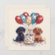 Cute illustration of Dachshund dogs dressed up for a birthday celebration. Perfect for pet lovers or dog parents!