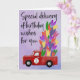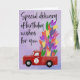 This is a sweet birthday card with a retro red truck with a load of hearts. The logo on the truck is Wishes & Company and the text says ‘Special delivery of Birthday wishes for you.’