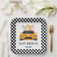Birthday Dinosaur race car yellow boy kid name Paper Plate
