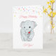 Birthday elephant and multicolored stars on white Card. All texts can be personalised.
