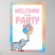 Birthday Elephant Pastel Bunch of Balloons Drawing Poster