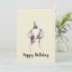 Cute hand drawn elephant with party hat and modern script "happy birthday". Cream background