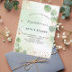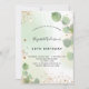 For an elegant 50th (or any age) birthday party. A golden watercolored background decorated with eucalyptus greenery and faux gold glitter dust. Personalise and a name and party details. Black and golden coloured letters.