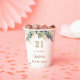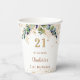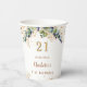 For an elegant 21st (or any age) birthday party. A white background. On the front and the back: Personalise and add a name, age and a date. Decorated with eucalyptus greenery and faux glitter dust.