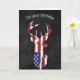 Deer silhouette with an American flag design on black leather background for a birthday.