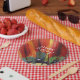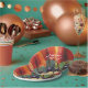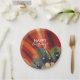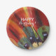 Colorful birthday party paper plate. Flower painting for nature lovers. Orange ,green, yellow painting .