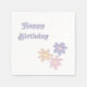 Pretty pastel flowers of pink and light purple with the words Happy Birthday in lavender