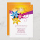 A teen girl's birthday invitation with three starburst flowers on an abstract dotted background. A striking colour combination makes the design pop against the white backdrop. Featured as a sweet sixteen invitation, it is suitable for any age.