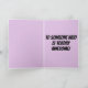 This card is great fun and good quality. I loved the humour inside and on the back. There is the opportunity to change the orientation of this card from landscape to portrait, which I did. It is relatively straightforward to amend the typeface to fit the new orientation. It was well packaged with no plastic. The printing on this card is excellent.