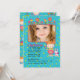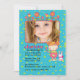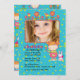 A charming, little girl's, photo invitation with lots of tiny flowers, hearts and dots. The whimsical photo frame has flowers "growing" from the top and is trimmed with a girl holding a flower next to her bunny friend.
