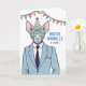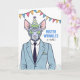 This card is great fun and good quality. I loved the humour inside and on the back. There is the opportunity to change the orientation of this card from landscape to portrait, which I did. It is relatively straightforward to amend the typeface to fit the new orientation. It was well packaged with no plastic. The printing on this card is excellent.