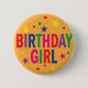 Birthday Girl colourful button with stars and confetti and a birthday candle flame on the letter "i". Fun for a birthday party for child or adult, or for the birthday girl at work.