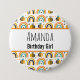 Birthday girl button with a cute patterned background. Whimsical bees and rainbows with little hearts and stars scattered around. Adorable and delightful.