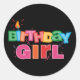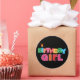 Fun design for the birthday girl featuring colourful text that says BIRTHDAY GIRL, a happy birthday candle and streamers. PinkInkArt original!